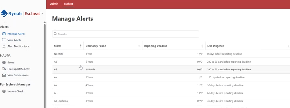 With RynohEscheat Pro, you can rely on our experts to handle the escheatment process end-to-end. Recent enhancements include: