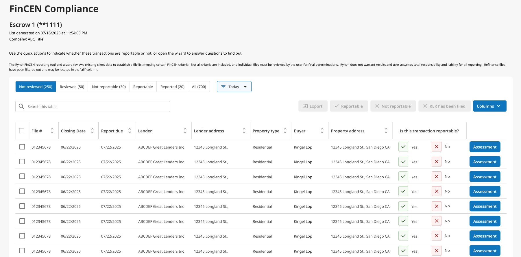 The FinCEN Compliance Reporting module will be available directly in Rynoh Live software suite under the new FinCEN Reporting tab. Clients will receive notifications and guidance ahead of launch to ensure a smooth adoption process.
